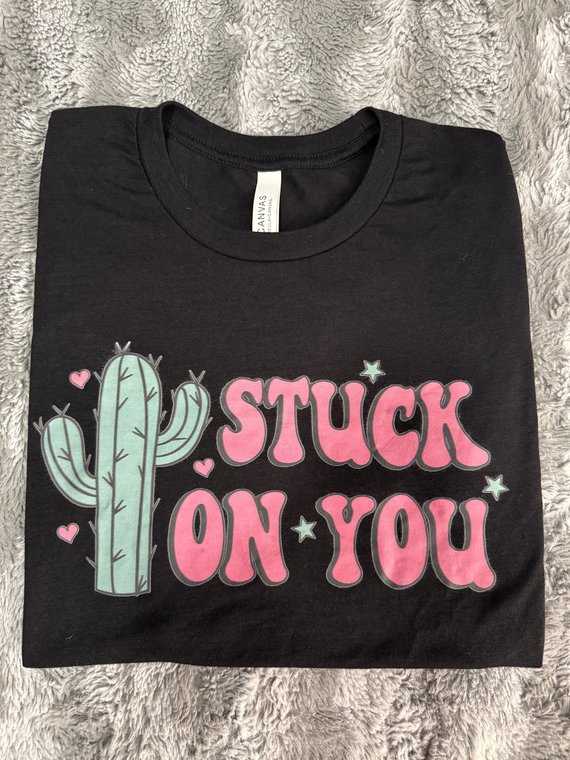 Our “Stuck On You” design is playful, sweet, and just the right amount of Western charm — perfect for pairing with denim, cardigans, or your favorite cozy flannel.